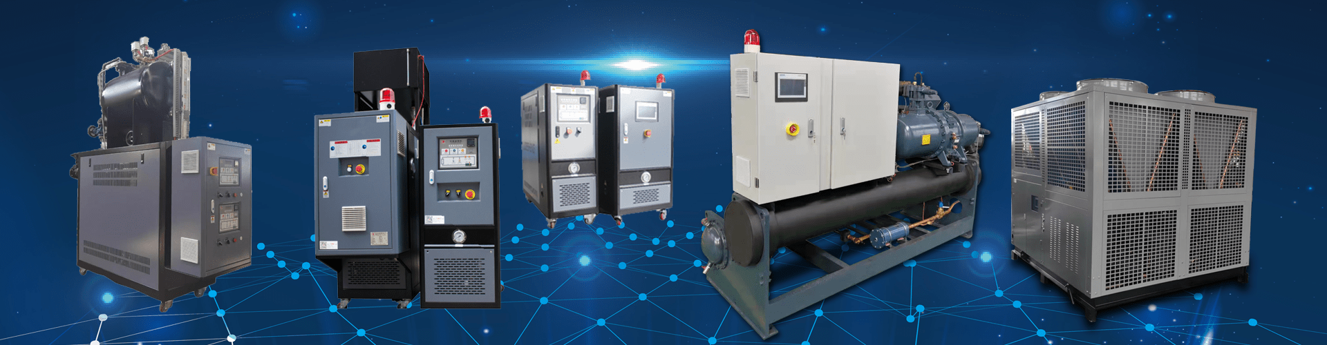 公司產(chǎn)品主要包括:工業(yè)冷水機(jī)、工業(yè)冷凍機(jī)、高低溫一體機(jī)、油溫機(jī)、水溫機(jī)、油冷機(jī)、螺桿式冷水機(jī)、熱泵機(jī)組、蒸發(fā)式冷水機(jī)組等工業(yè)溫度控制設(shè)備。針對(duì)不同行業(yè)的專業(yè)溫度控制需求,公司還研發(fā)出了行業(yè)專用溫控設(shè)備,如變速箱檢測(cè)、新能源汽車專用冷熱一體機(jī)、橡塑專用水溫機(jī)、壓鑄專用油溫機(jī)、防爆模溫機(jī)、防爆冷水機(jī)、液壓系統(tǒng)專用油冷機(jī)等。